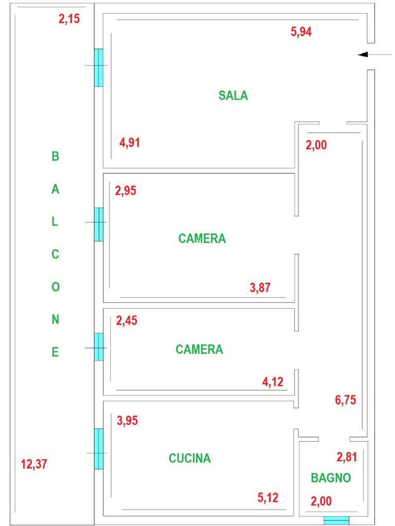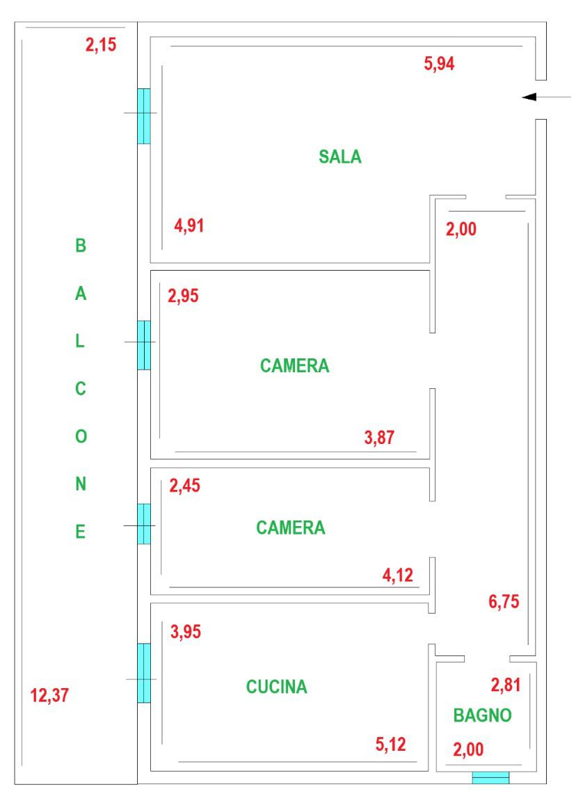 Ingresso, sala, cucina abitabile, 2 camere da letto e bagno.