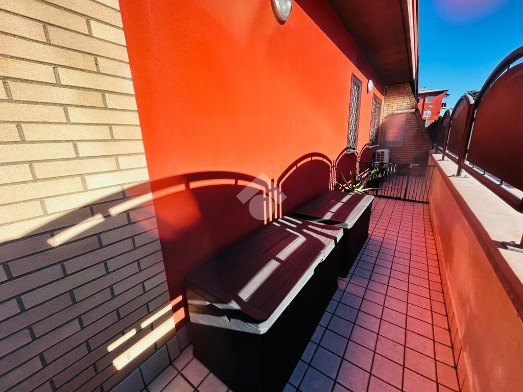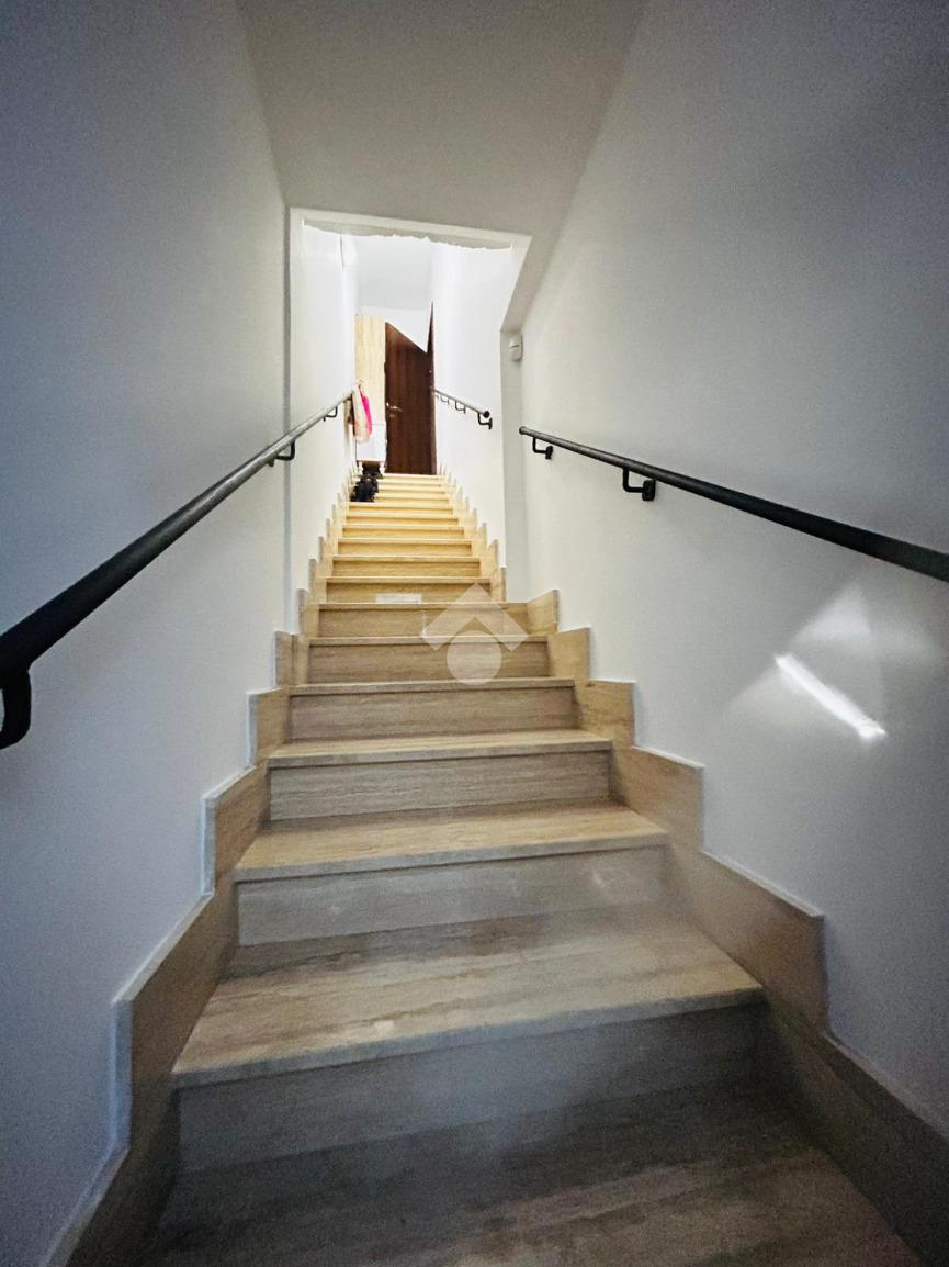 E' possibile accedere al box auto di 18 mq ed al posto auto coperto (compresi nel prezzo di vendita), posti al piano seminterrato dello stabile, attraverso una scala interna avente accesso diretto dalla sala.