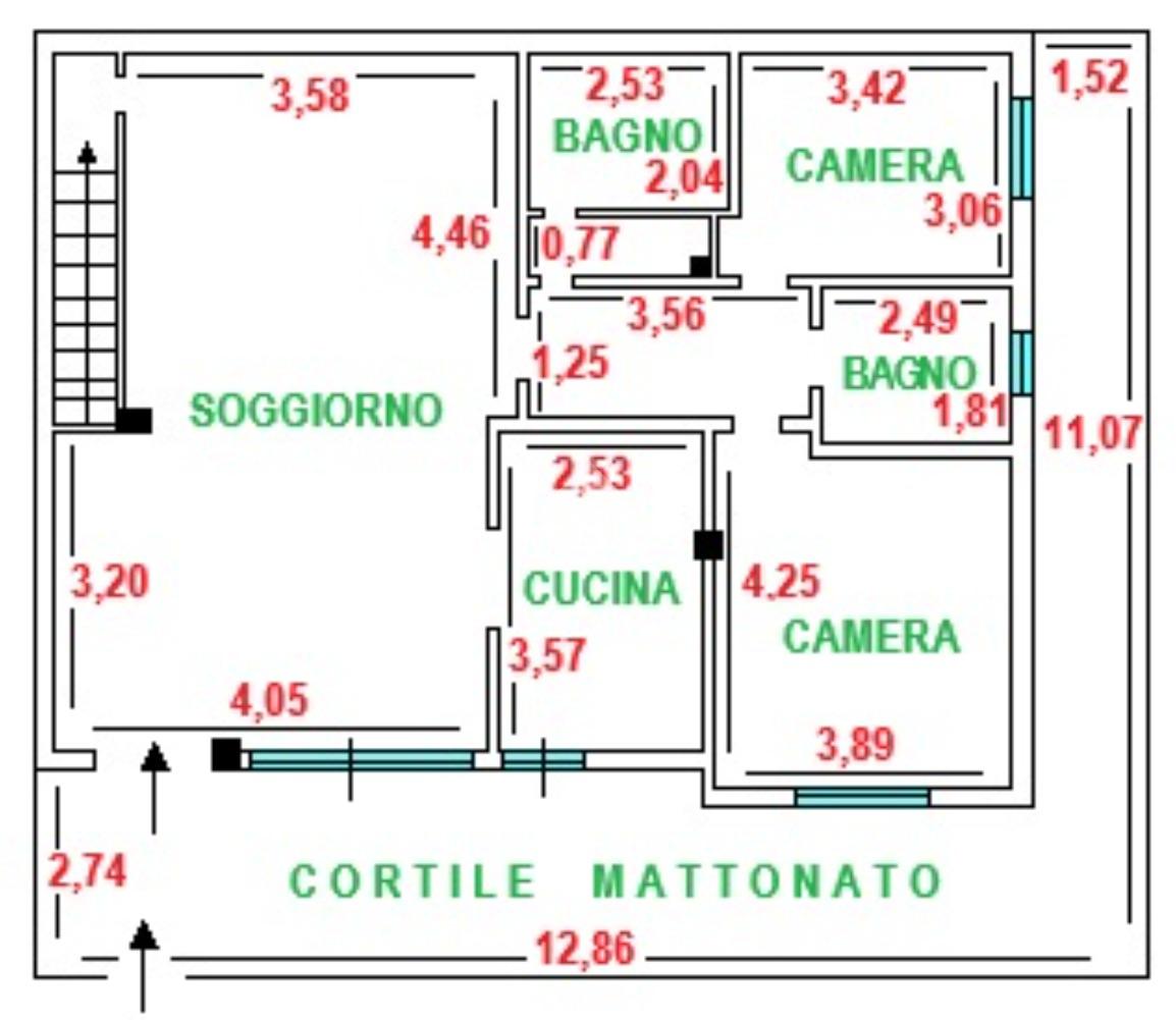 In palazzina misto cortina di recente costruzione posizionata in zone centrali, piano terra con ingresso indipendente dotato di giardino mattonato che lo circonda di 50 mq.