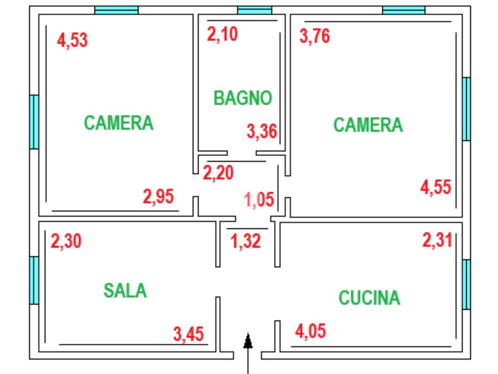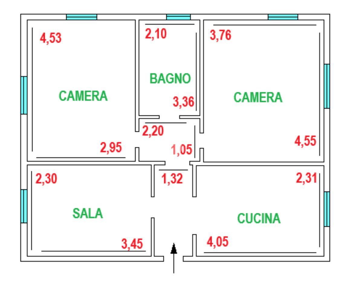 Ingresso, soggiorno, cucina separata, 2 camere da letto e bagno finestrato con vasca. A livello il terrazzo d'ingresso di 9 mq.