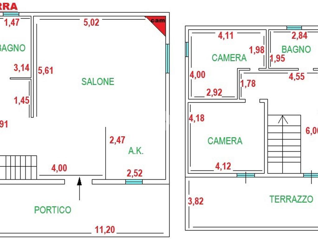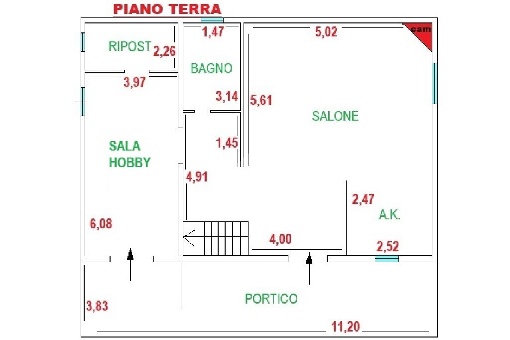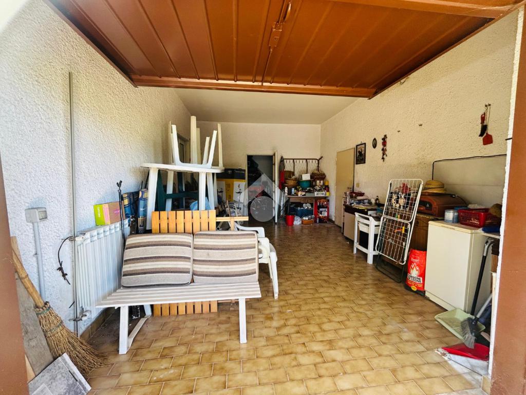 Piano terra con portico di 43 mq. Ingresso, salone con camino, cucinotto finestrato e bagno. Sala adiacente di 24 mq con accesso utile anche per poter mettere le auto.