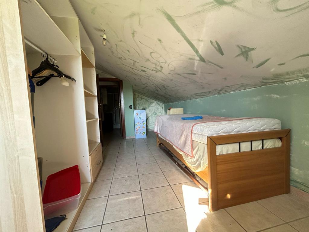 Soluzione indipendente di 228 mq disposta su 2 livelli, circondata da cortile mattonato di 190 mq e giardino di 570 mq. Piano terra rialzato di 138 composto da ingresso, soggiorno ed angolo cottura con camino, 4 camere da letto e bagno. Servita da un balcone di 6 mq e terrazzo di 24 mq. Primo piano in parte mansardato composto da sala, cucina, 2 camere da letto, bagno e ripostiglio. Box auto di 70 mq posto al piano seminterrato.
