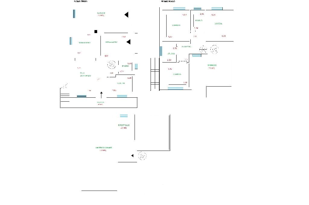 Piano terra di 81 mq composto da: ingresso, soggiorno, sala da pranzo, cucina, disimpegno e bagno.