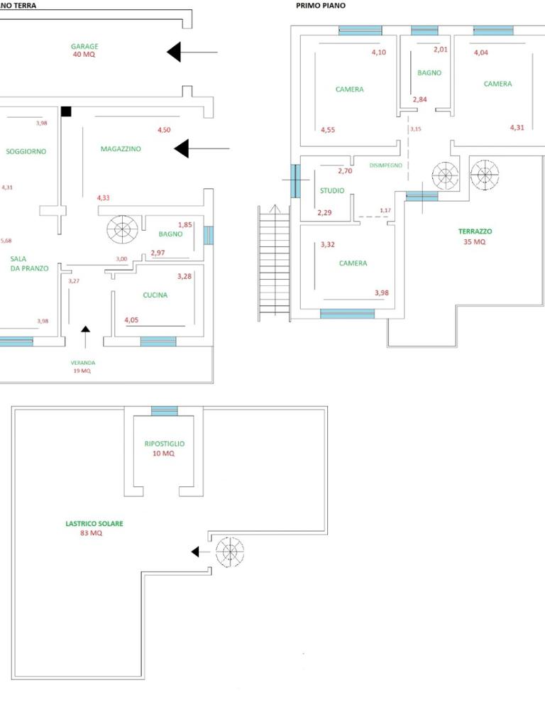 Primo piano di 75 mq composto da: 3 camere, bagno, disimpegno e studio.