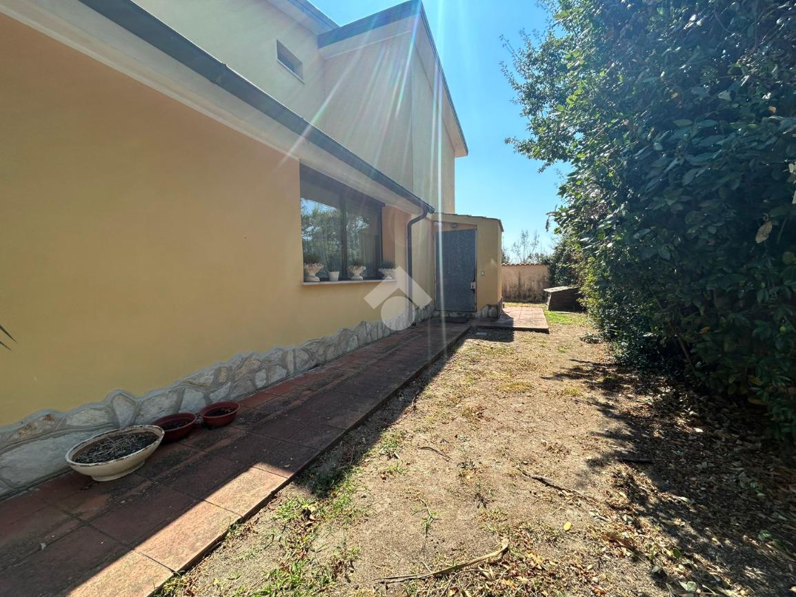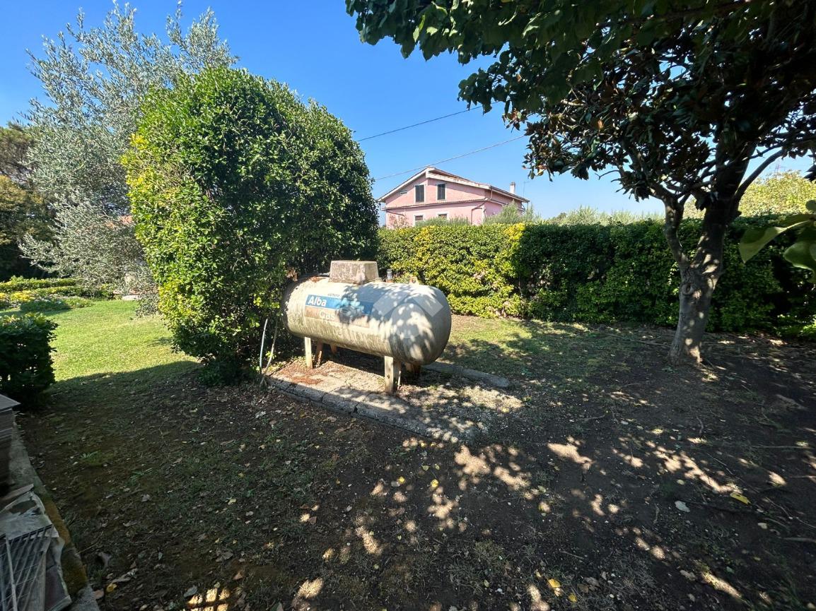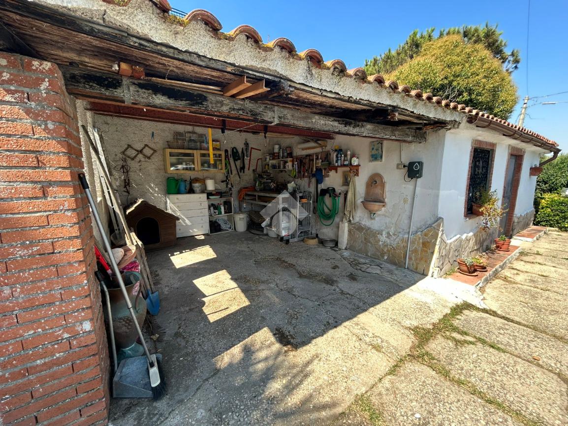 Il curato giardino circonda interamente l'immobile ed è dotato di un magazzino esterno di 22 mq con una tettoia adiacente di 25 mq ed un box auto di 14 mq.