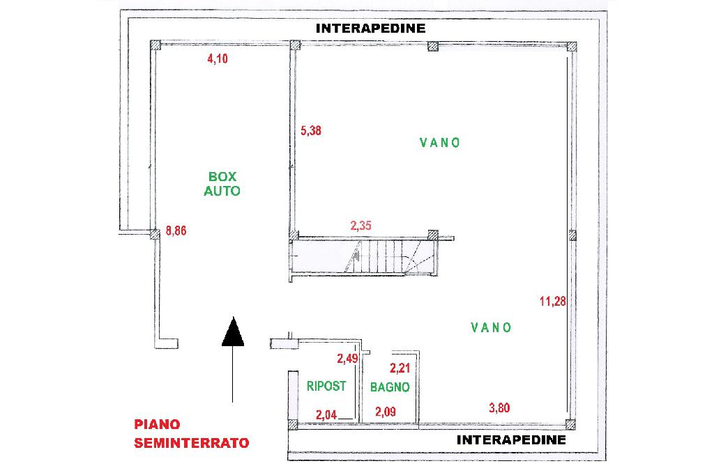 Il piano seminterrato di totali 152 mq è dotato di 2 vani, bagno e ripostiglio.