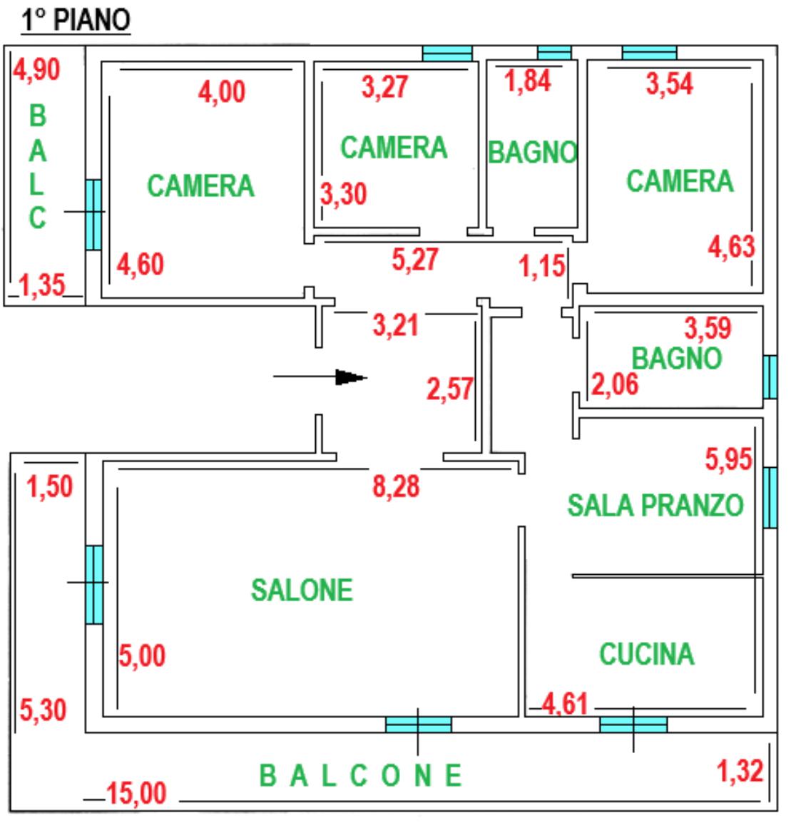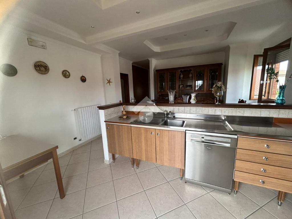 Primo piano di 160 mq ottimamente rifinito, servito da 2 balconi. Ingresso, luminoso salone di 41 mq con camino, cucina con sala pranzo per totali 26 mq, 3 camere da letto e 2 bagni con finestra.