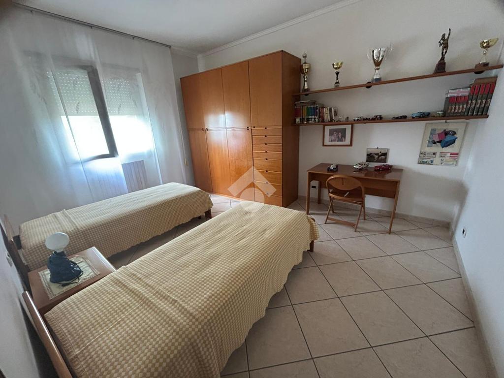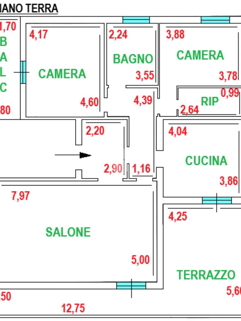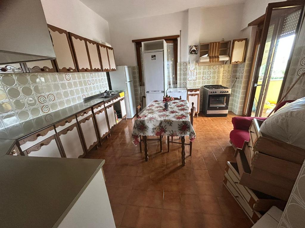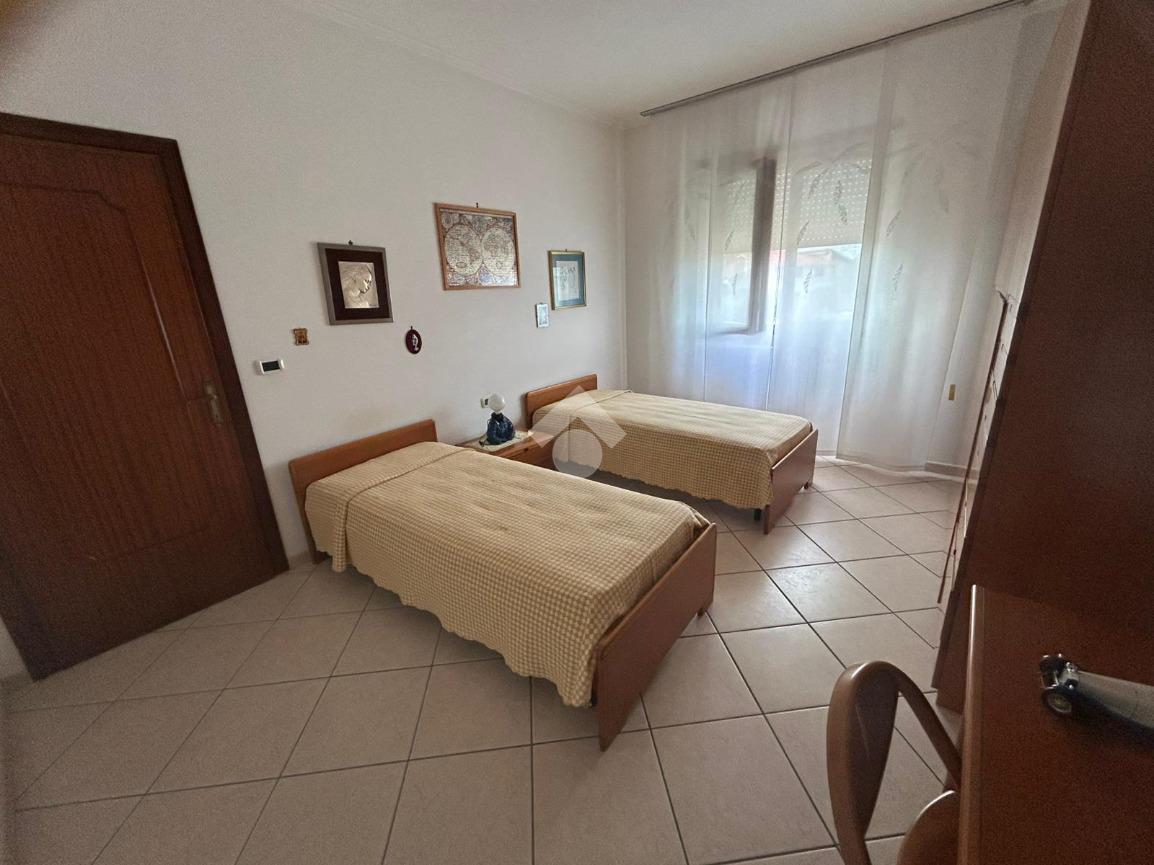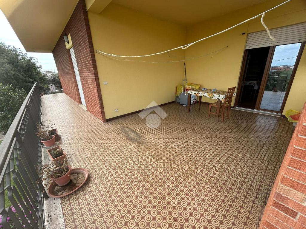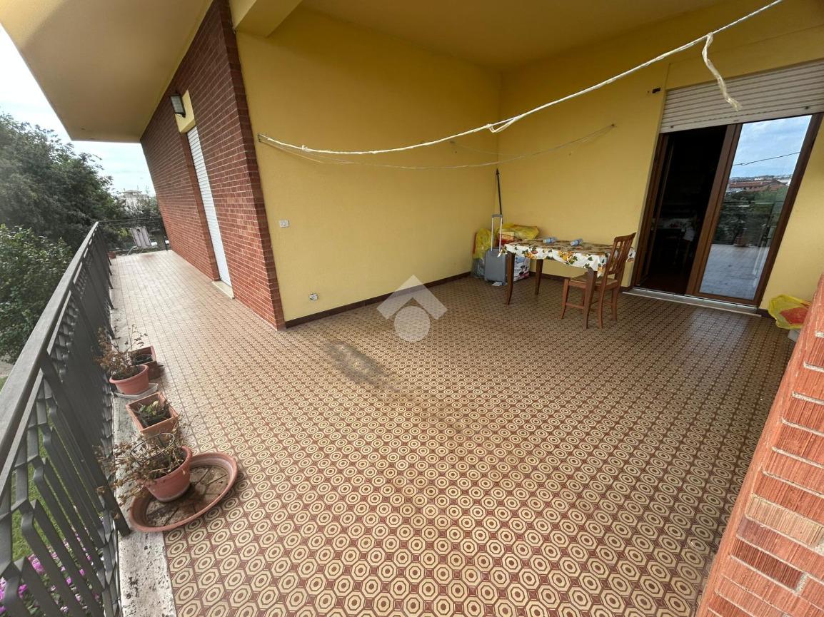 Piano terra rialzato di 130 mq servito da terrazzo di 37 mq ed un balcone. L'immobile si presenta allo stato originario interno con infissi nuovi e si compone di ampio ingresso, salone, cucina abitabile, 2 camere matrimoniali, bagno ristrutturato di recente e ripostiglio.